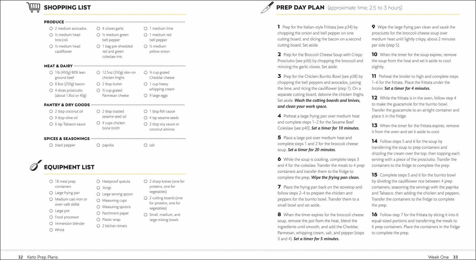 Eight weekly meal plans offer a broad range of recipe combinations to ensure you're always enjoying a variety of recipes, and each prep plan includes detailed shopping lists, step-by-step prep day instructions, and handy equipment lists to help you prepare every meal for a week full of satisfying keto eating.